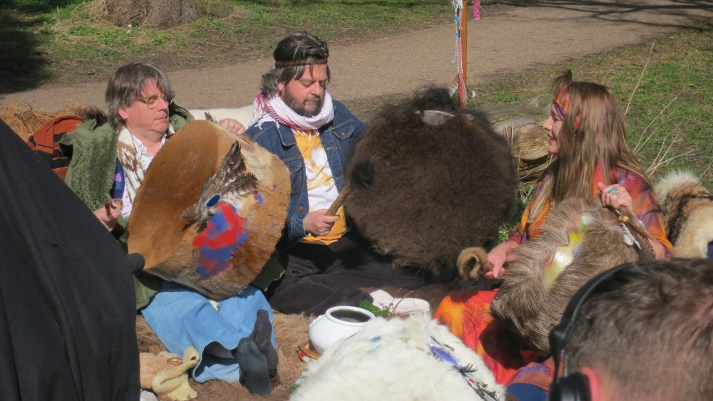 Sommerferie: gæster laver trommedans i Shamanhulen, på Fyn